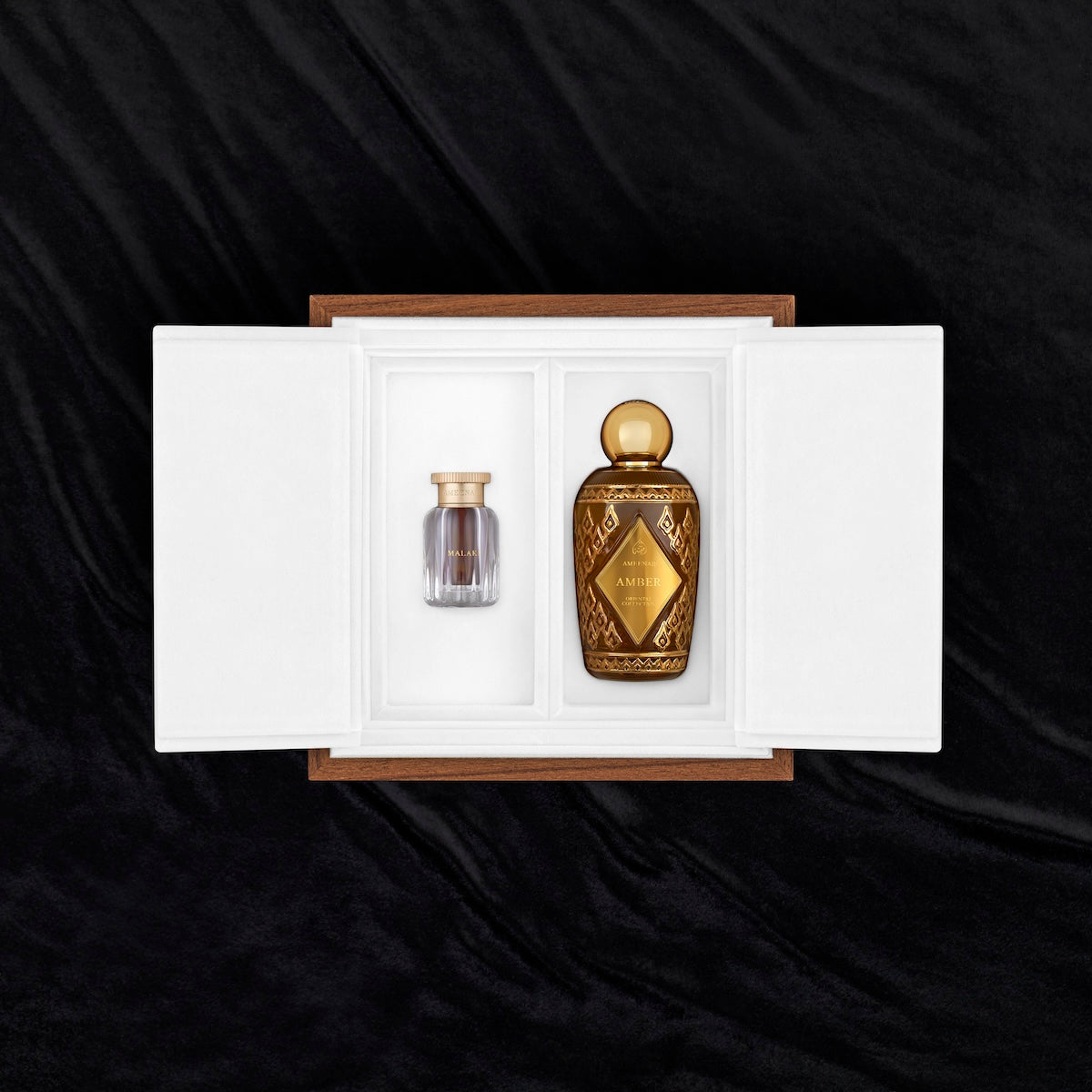 يرمز طقم بريستيج للهدايا – قطعتان إلى البساطة المترفة والفخامة الطبيعية. يأتي الصندوق الخشبي بلونه البني الطبيعي ليحتضن أي عنصرين من منتجات أمينة: زجاجات العطور، دهن العود، أو قطع العود الطبيعي